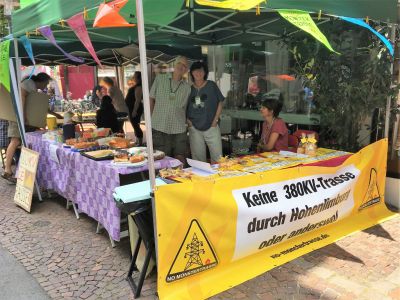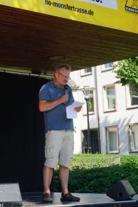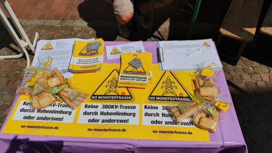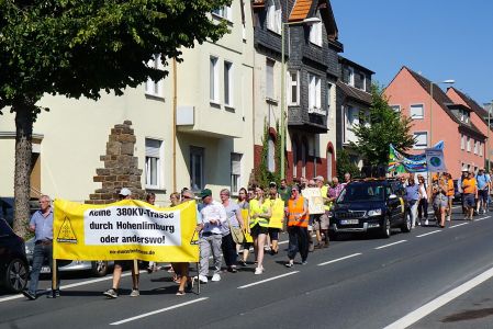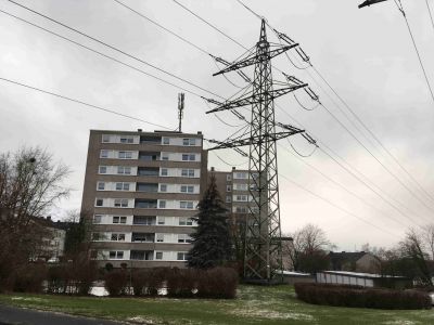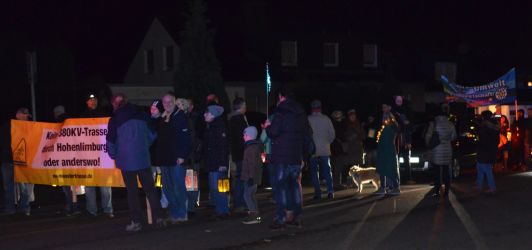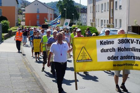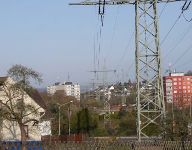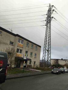Sie sehen hier die alten Strommasten. Die neuen Strommasten sind doppelt so hoch und haben 38 Leitungen mit 380 KV. Würde die Trasse neu gebaut werden, müsste ein Mindestabstand von 400 Metern links und rechts der Leitung eingehalten werden. Bei einer Bestandstrasse soll diese Regelung nicht gelten ??????